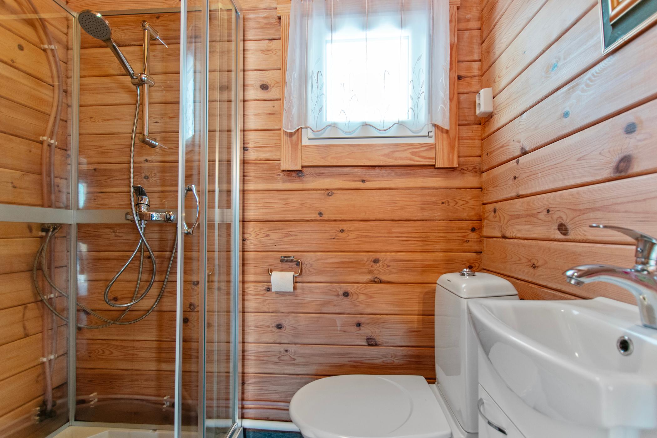 A cozy little wooden cottage (2015) for two people, with two beds, TV, dining area, kitchenette and toilet. The kitchen is equipped with a two-plate hotplate, refrigerator, microwave, coffee maker, kettle and toaster. The toilet also has a shower. The cottage has an air heat pump which is used for heating and cooling.