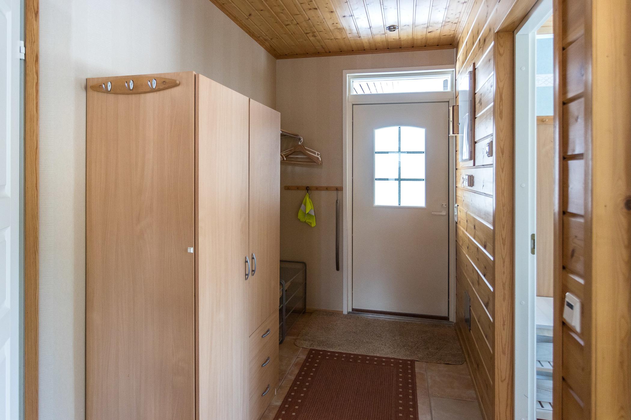 40 km north of Kolari, lake Äkäslompolo 1,5 km, swimming beach 2,5 km. A cottage, built 2003. Livingroom/kitchen, two bedrooms each with two separate beds, loft (40 m², low room height, sloping ceilings) with three alcoves separated by curtains (one alcove has four beds and two alcoves each have two beds), electric sauna, washing room, separate toilet. Heated ski maintenance room with equipment. There is also wifi.