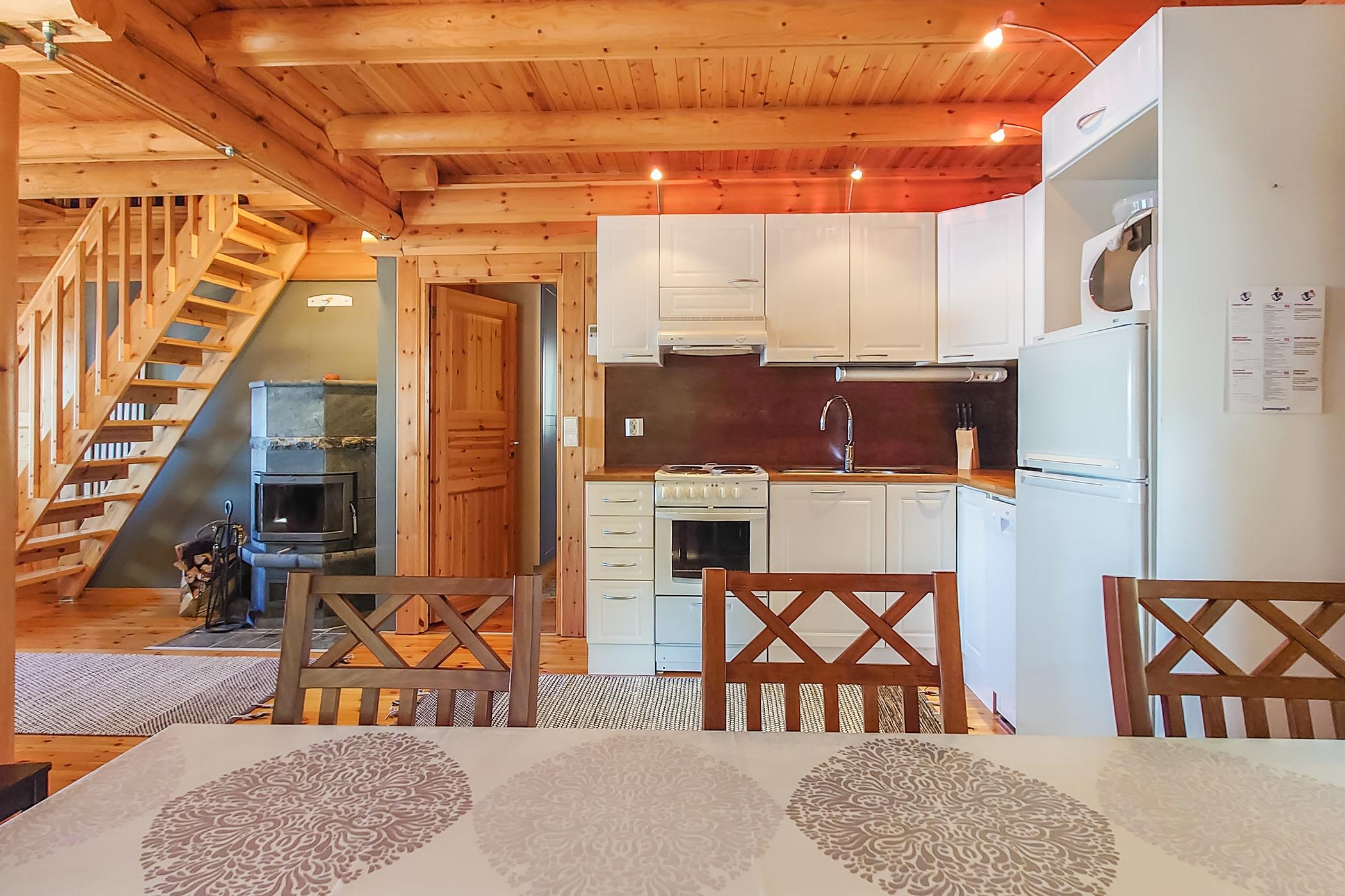 Log building 2011. Downstairs: living room/kitchen, bedroom with double bed, toilet-washroom, sauna and large open porch. Access to the washroom both indoors and outdoors.