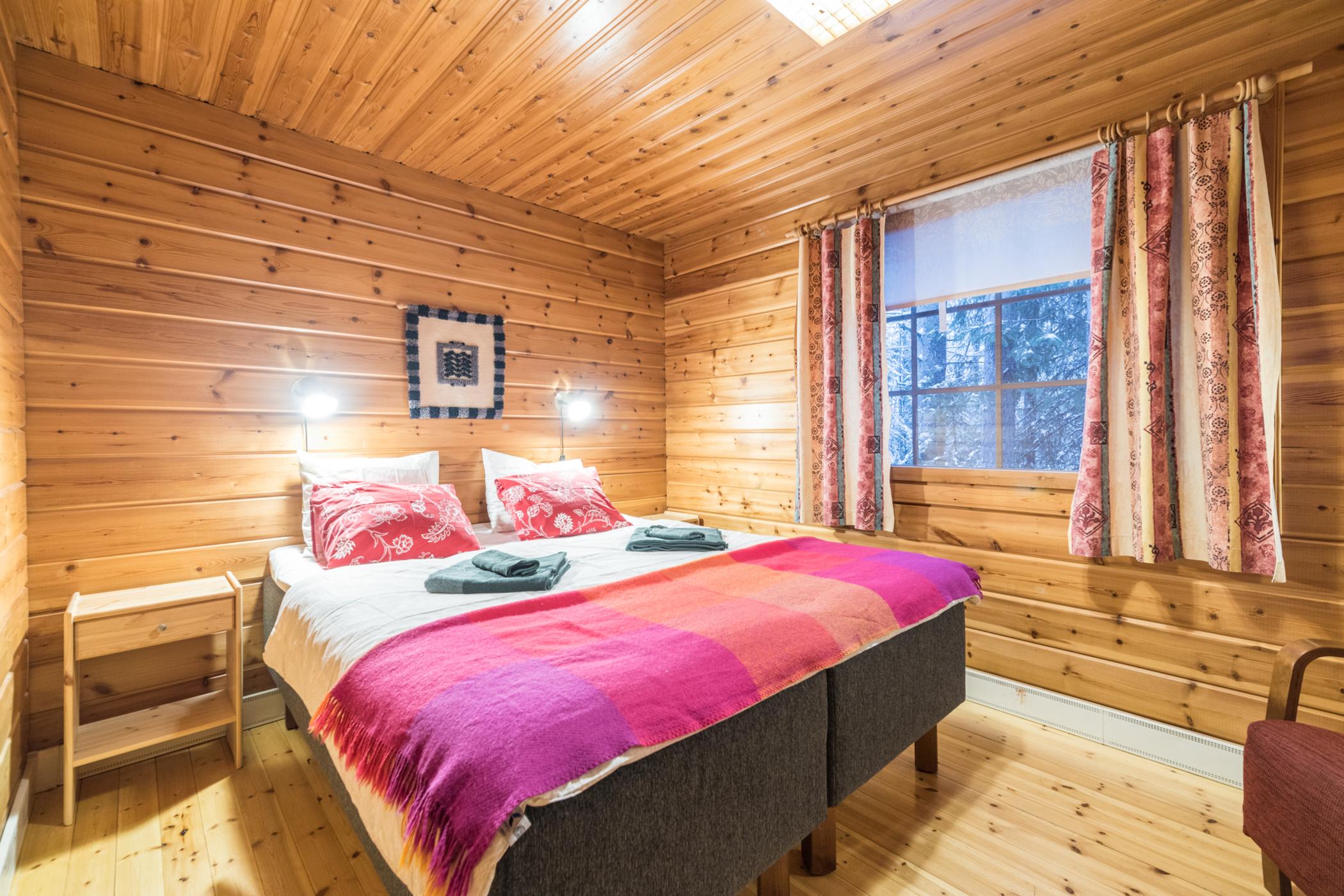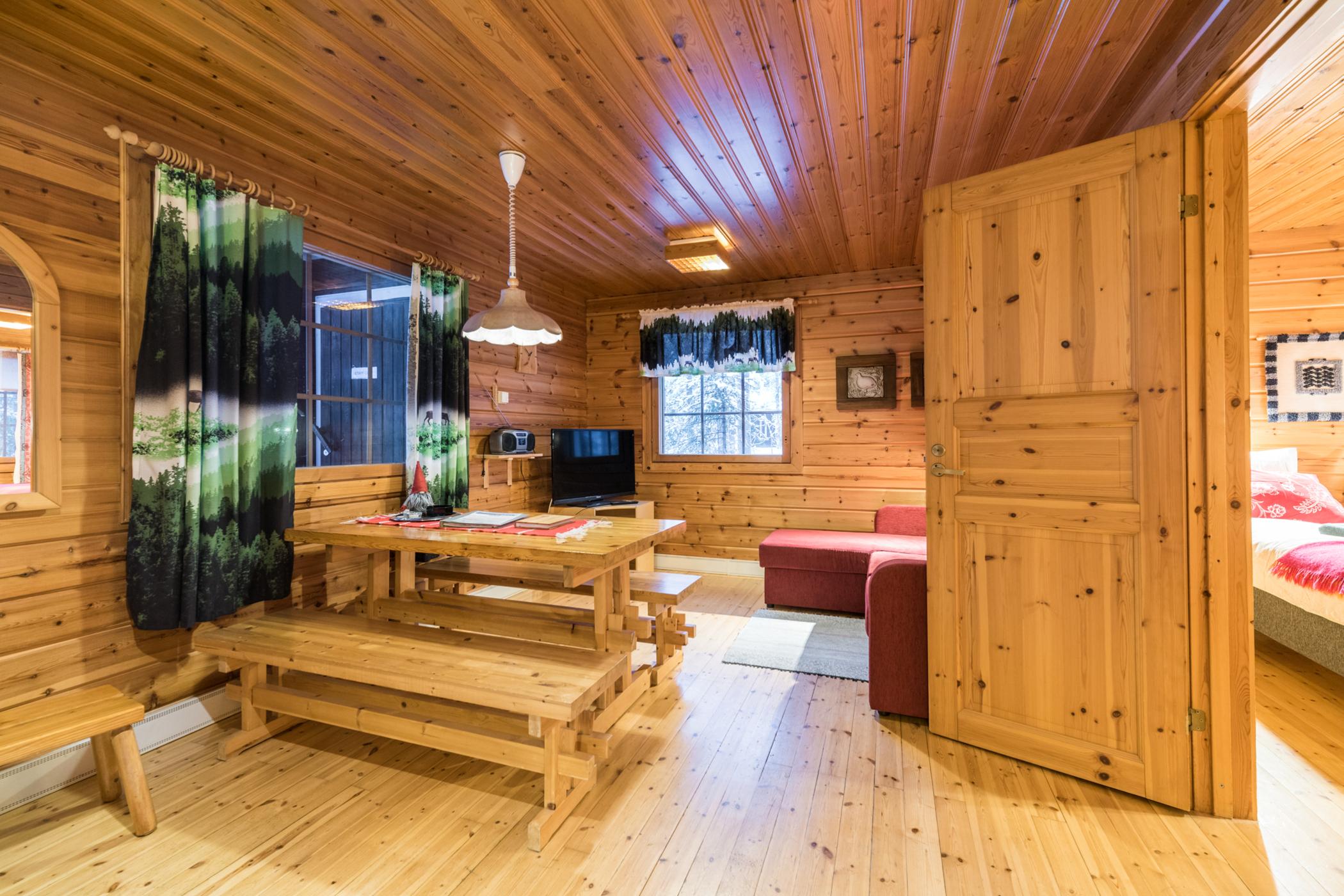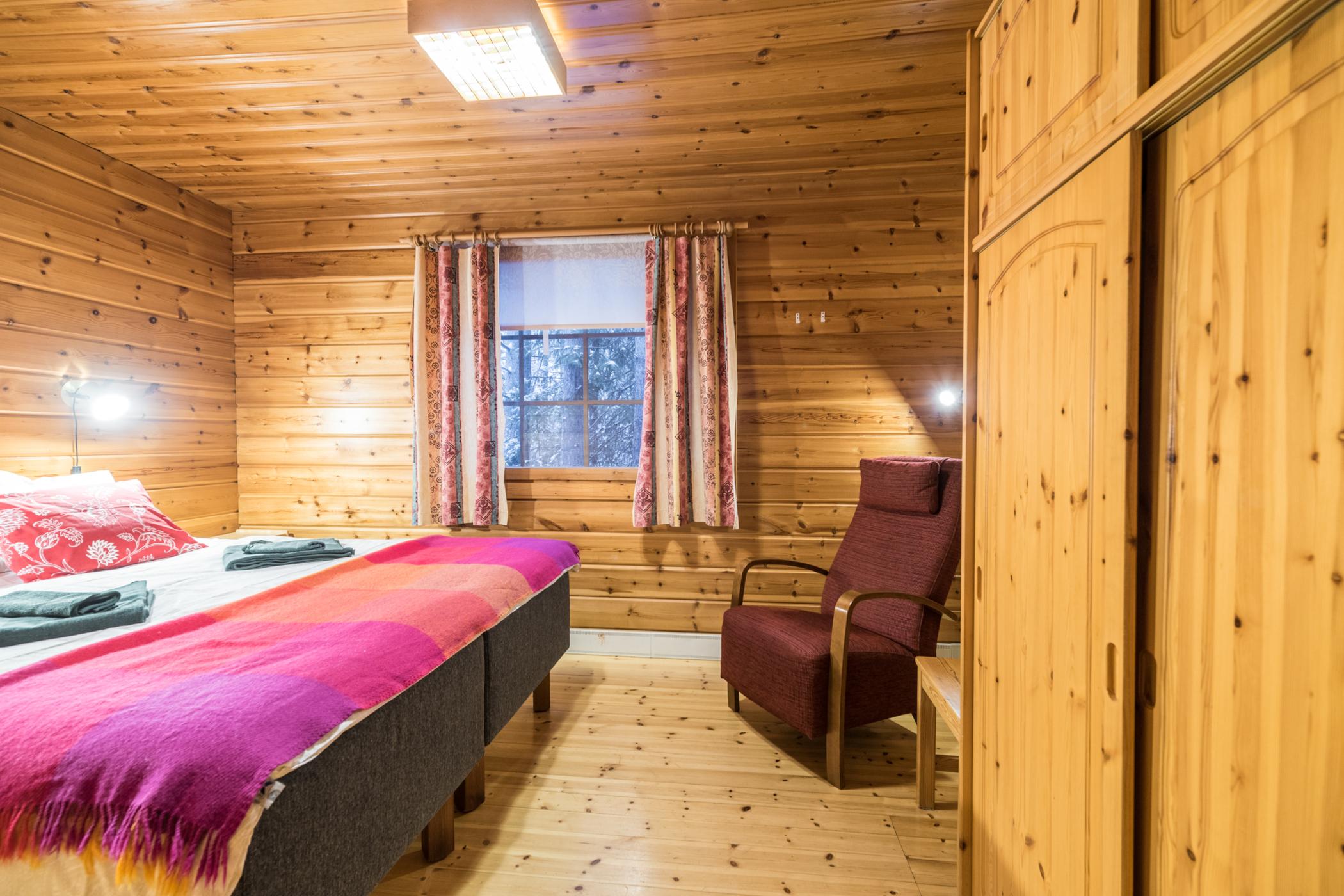 Kolarista 40 km pohjoiseen, Äkäslompolon keskustassa sijaitseva yksittäinen hirsimökki, rak.1990. Tupakeittiö vuodesohva (leveys 120 cm), 2 makuuhuonetta, joissa kummassakin 2 erillistä vuodetta, sähkösauna, pesuhuone/wc. Alueella suksienhuoltotila.