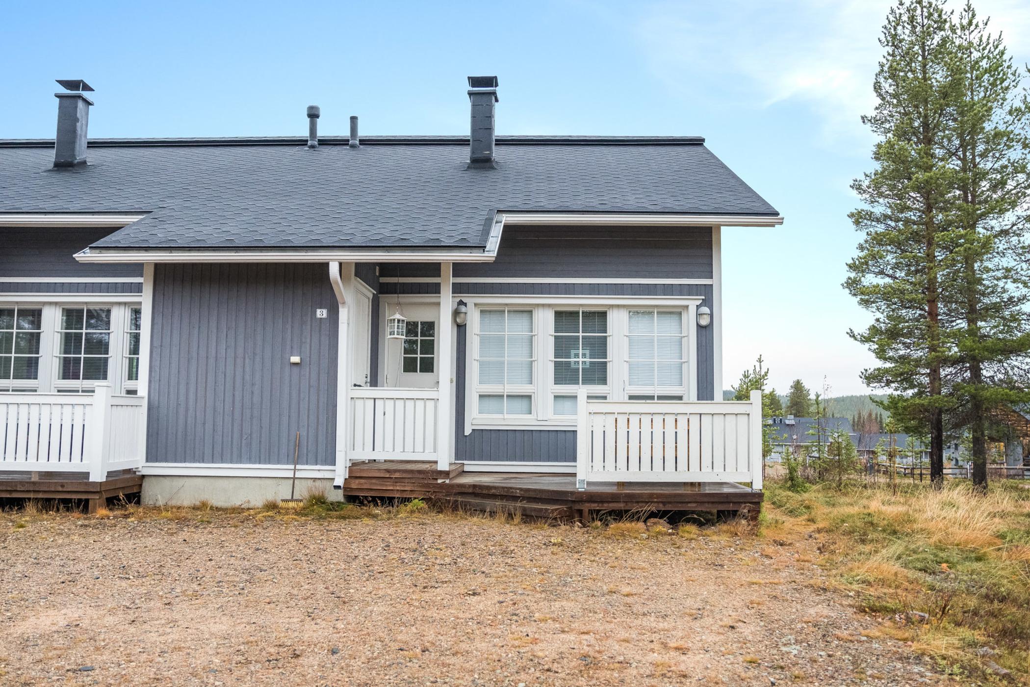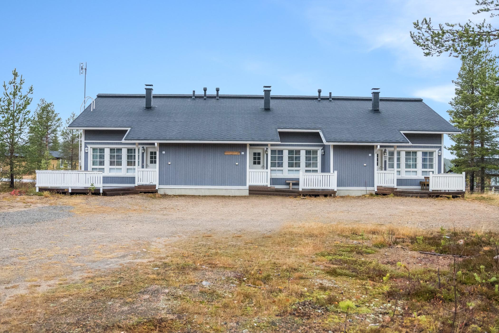 Kolarista 40 km pohjoiseen, Äkäslompolojärvi 1km, uimaranta 2,5km. lautarakenteinen rivitalohuoneisto (päätyhuoneisto) 2006. Tupakeittiö, 2 makuuhuonetta, toisessa kaksi erillistä vuodetta ja toisessa parivuode, parvella (14 m²) 4 erillistä vuodetta, sauna (sähkölämmitteinen), pesuhuone, erillinen wc. Suksien huoltotila, voiteluteline.