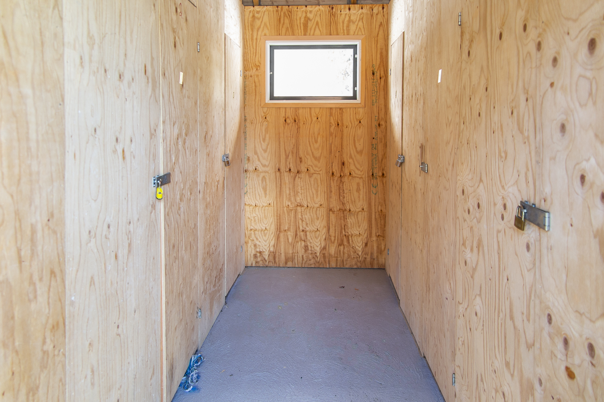 Taloyhtiön yhteinen suksienhuoltotila sekä huoneistokohtainen varasto, jossa takkapuut.