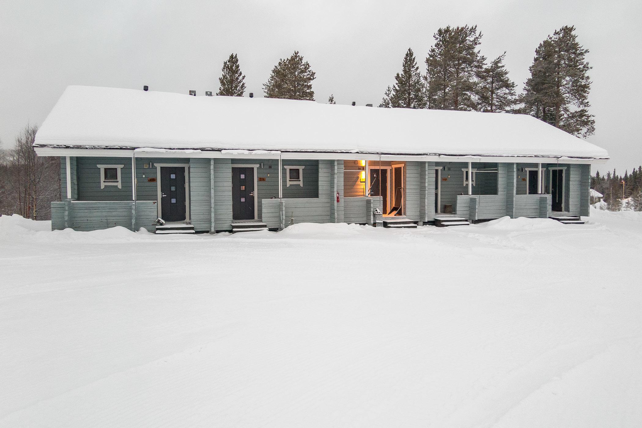 Kolarista 40 km pohjoiseen, Äkäslompolon keskustassa Ylläskaltio hotellin lähellä sijaitseva rivitalohuoneisto, 1990. Tupakeittiö, jossa levitettävä sohva, parvella (13 m², viistokattoinen, jyrkät portaat) 3 runkopatjaa, sähkösauna, pesuhuone/wc.