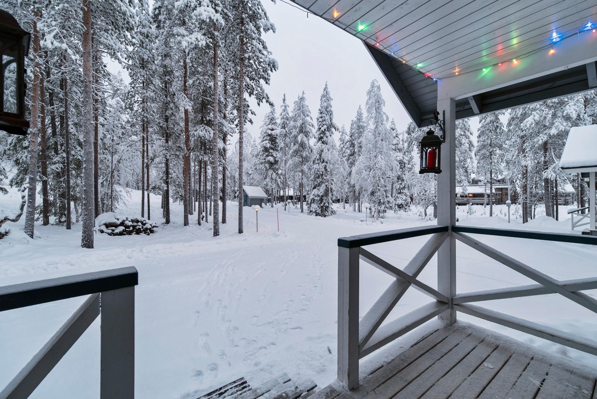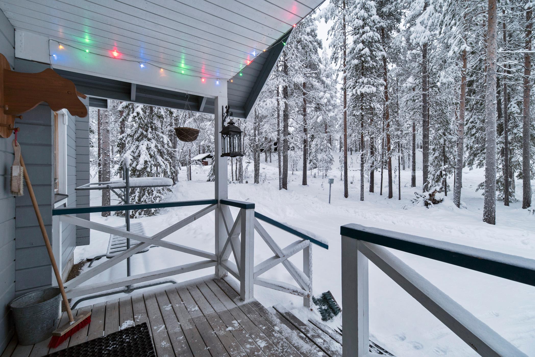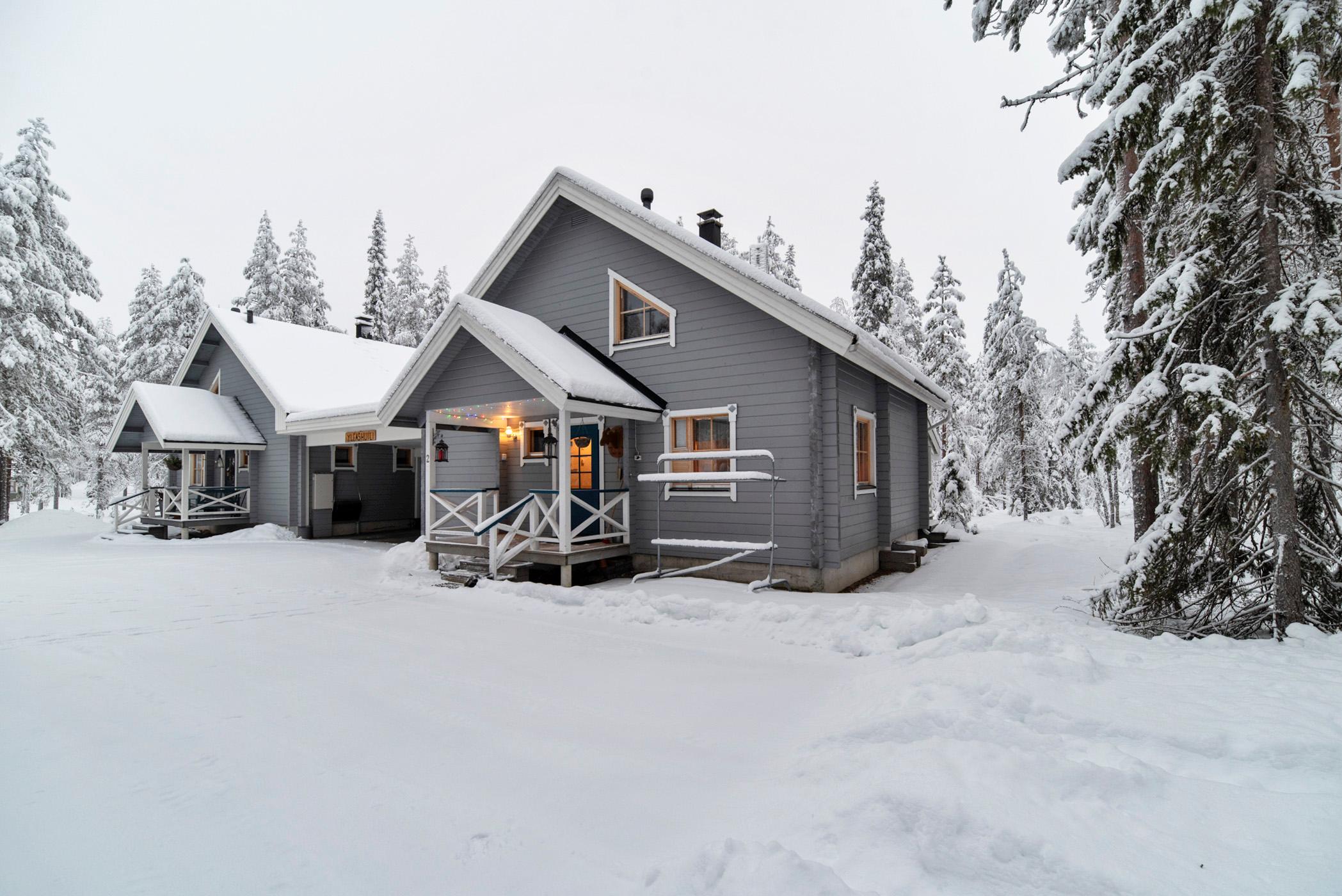 Rovaniemeltä 165 km pohjoiseen, Ylläsjärven kylässä, Palovaarassa sijaitseva hirsiparitalo, rak. 2003. Talojen välissä autokatos. Keittiö, olohuone, 3 x makuuhuone (1 alakerrassa, 2 yläkerrassa. Toisessa yläkerran makuuhuoneessa liukuovi), joissa yhdessä parisänky ja kahdessa 2 yksittäistä sänkyä, yläkerran aulassa 2 patjaa, sähkösauna, pesuhuone, 2 x wc. Huoneistoala 90 m², josta 26 m² yläkerrassa.