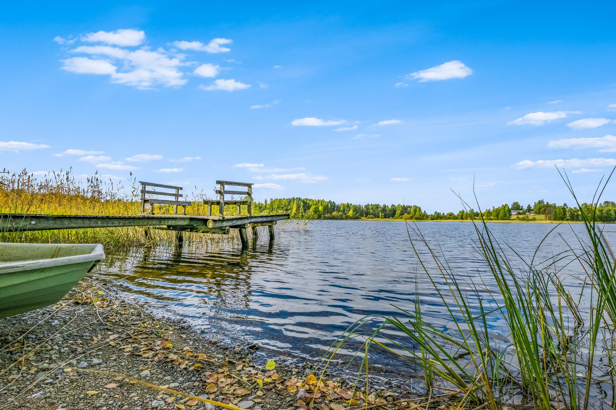 Jyväskylästä 75 km koilliseen, Ukonjärvi 35 m (pituus 1 km, leveys 400 m), matala, kova hiekkapohja, laituri, oma vene.
