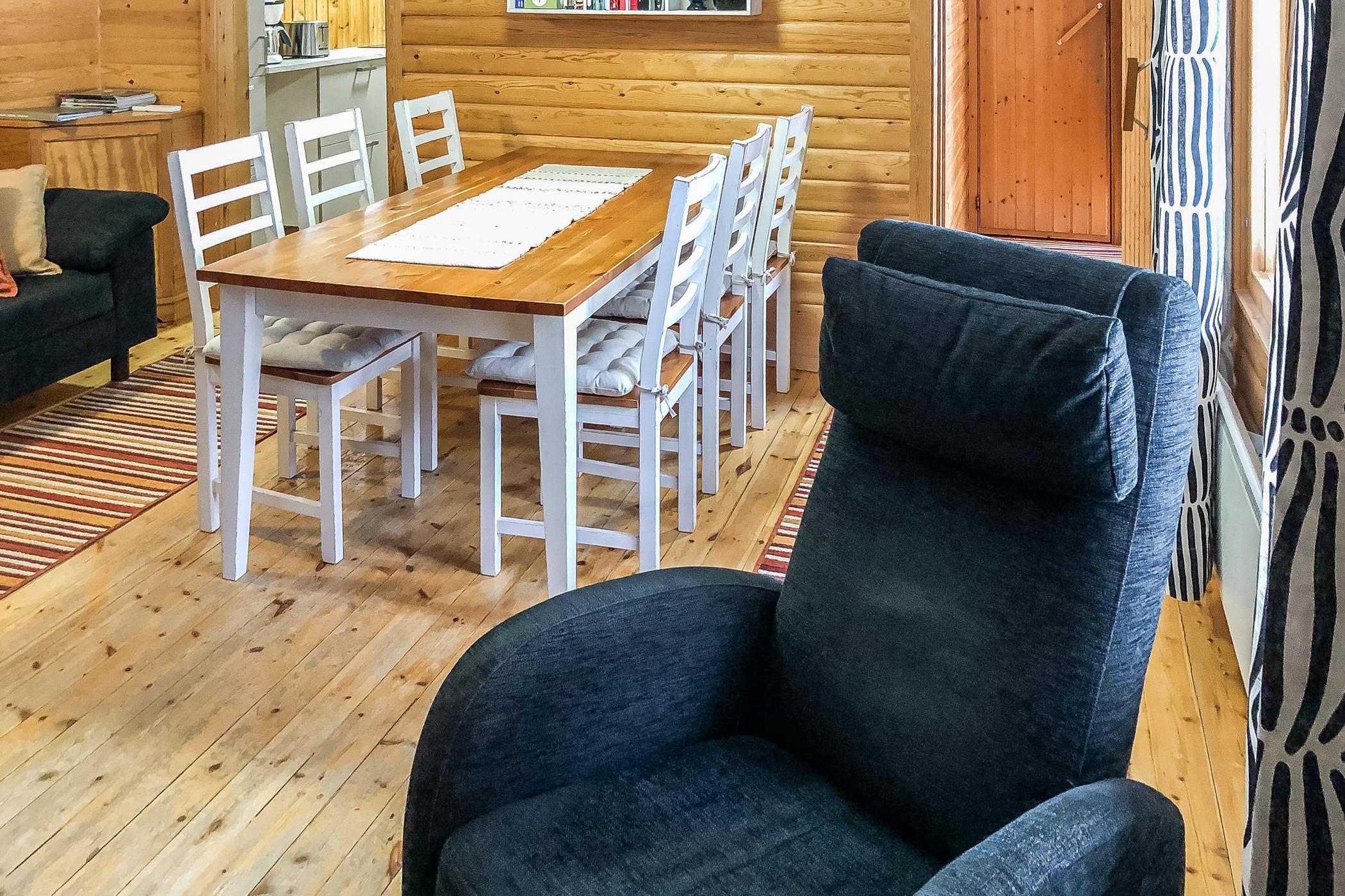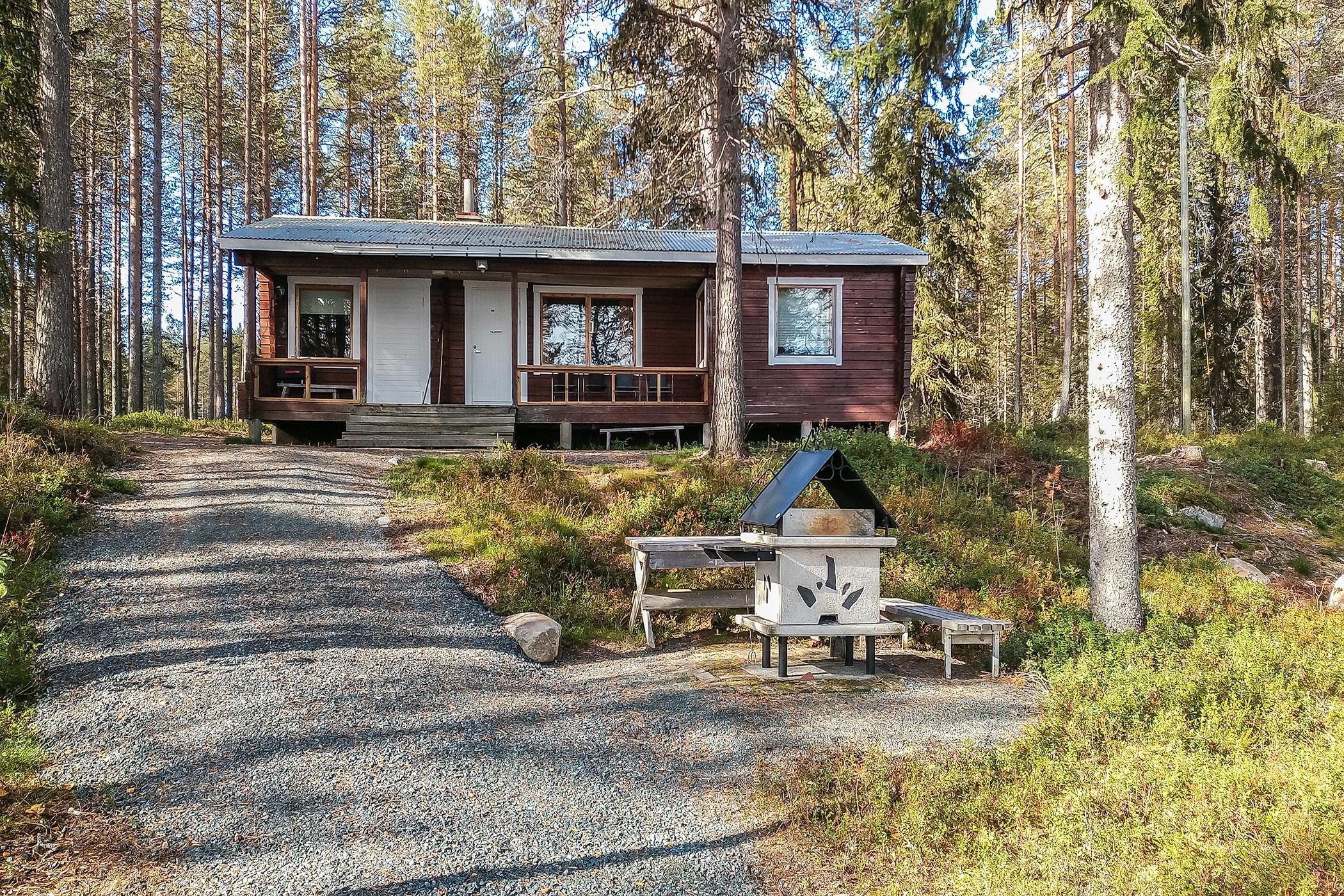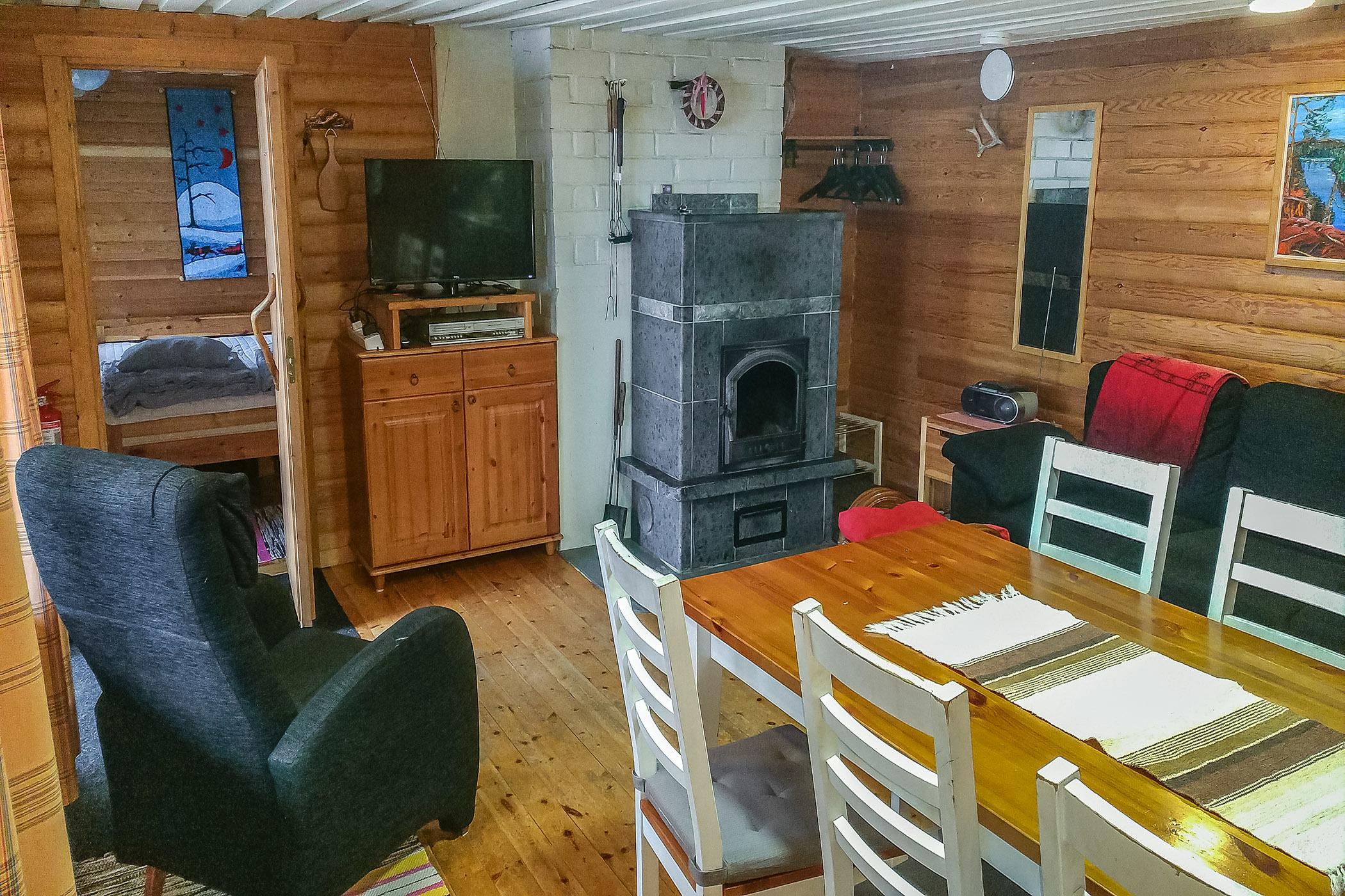 Vuonna 1974 rakennettu erillinen omarantainen hirsimökki, keittiö kokonaan nykyaikaistettu 2024/02, olohuone, makuuhuone: parivuode (läpikulku makuusoppeen, ovi välissä) makuusoppi: kerrossänky, saunakamari: 80 cm sänky, wc pesuhuoneessa.