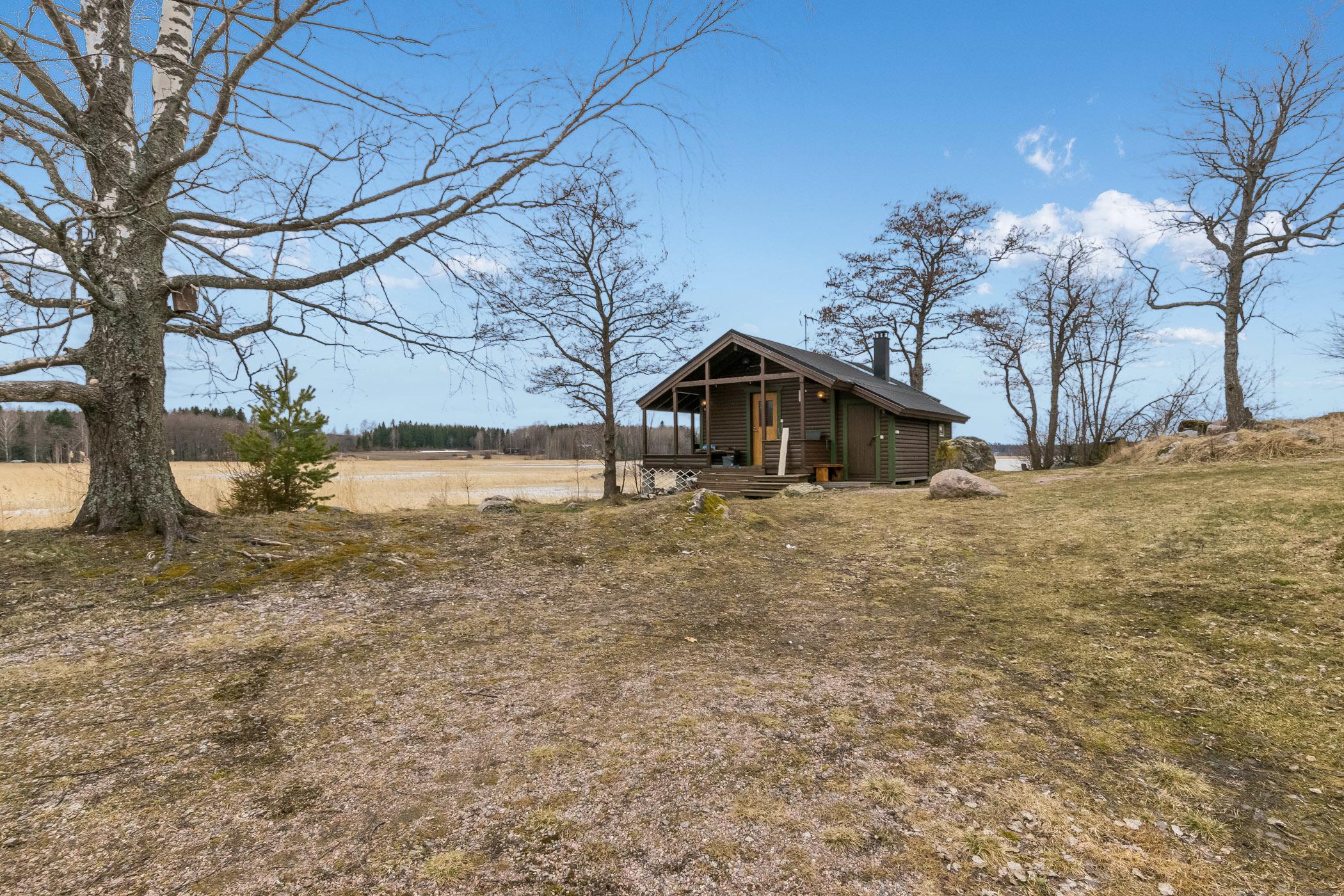 Hirsimökki 2000, remontoitu 2019, mökki on yksi huone (20 m²), jossa keittiönurkkaus, kerrossänky (alasänky 120 cm, ylä 90 cm), katettu kuisti, jonka kautta kulku biokäymälään.