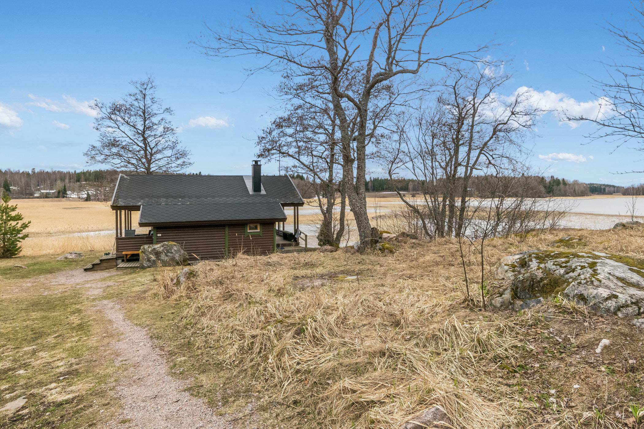 Erillinen saunarakennus, jossa pukuhuoneessa kerrossänky kahdelle ja saunassa puukiuas. Saunarakennuksen vieressä on toinen biokäymälä.