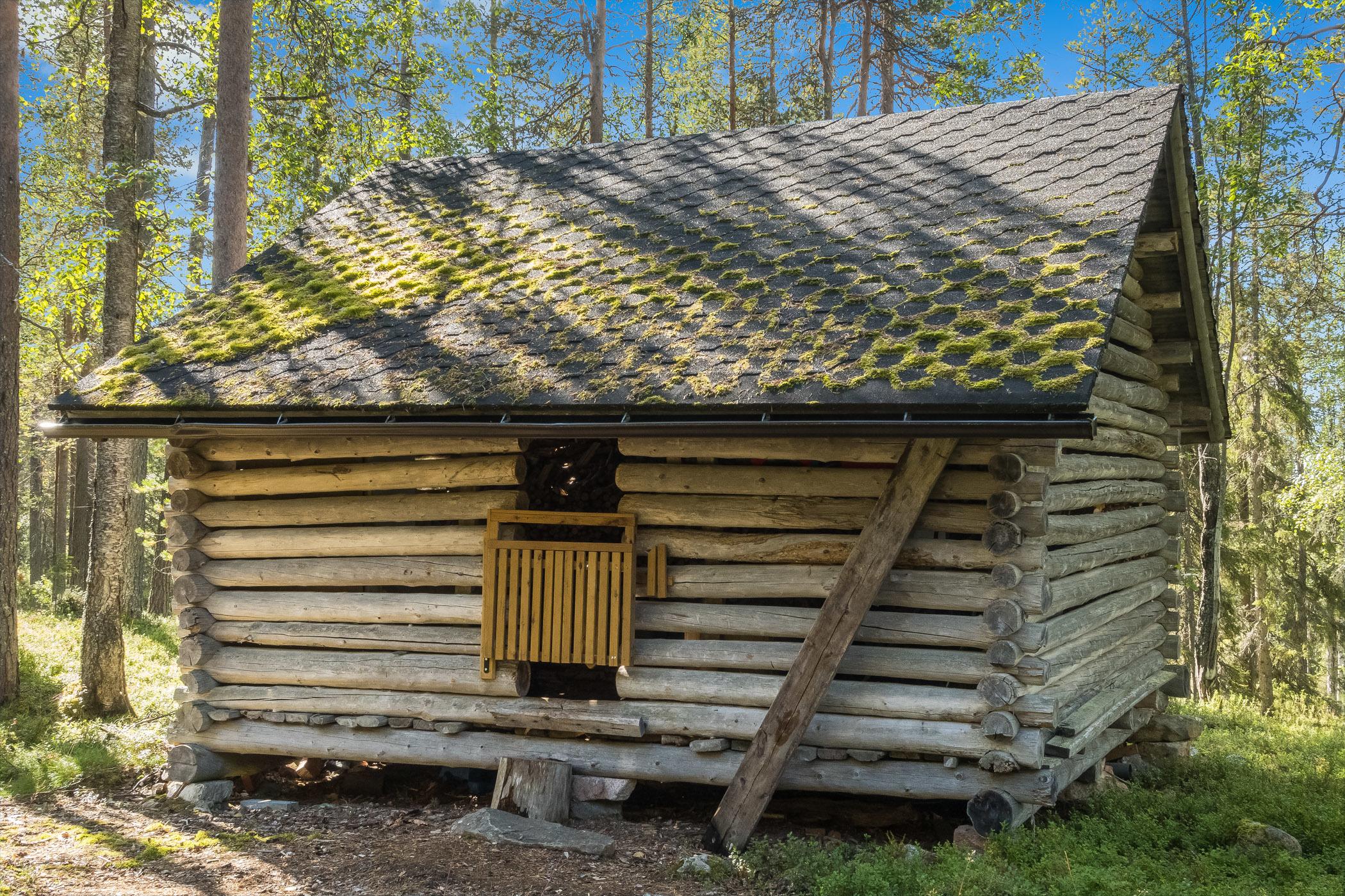 Rovaniemeltä 110 km pohjoiseen, Luoston matkailukekuksen läheisyydessä (8 km). Kelohonkamökki 1990, tupakeittiö, makuuhuoneessa parivuode, matala parvi 4 vuodetta, sauna, pesuhuone/wc katettu kuisti.